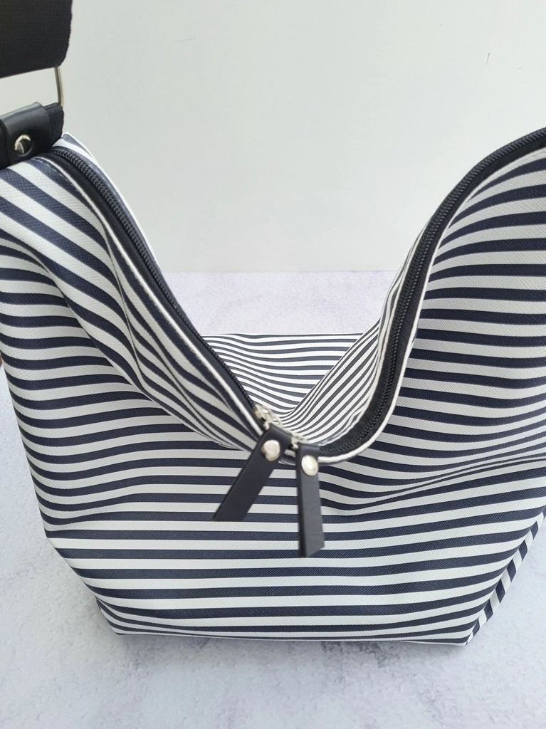 Uma bolsa enorme, com caimento maravilhoso, que fica linda até mesmo quando está vazia.